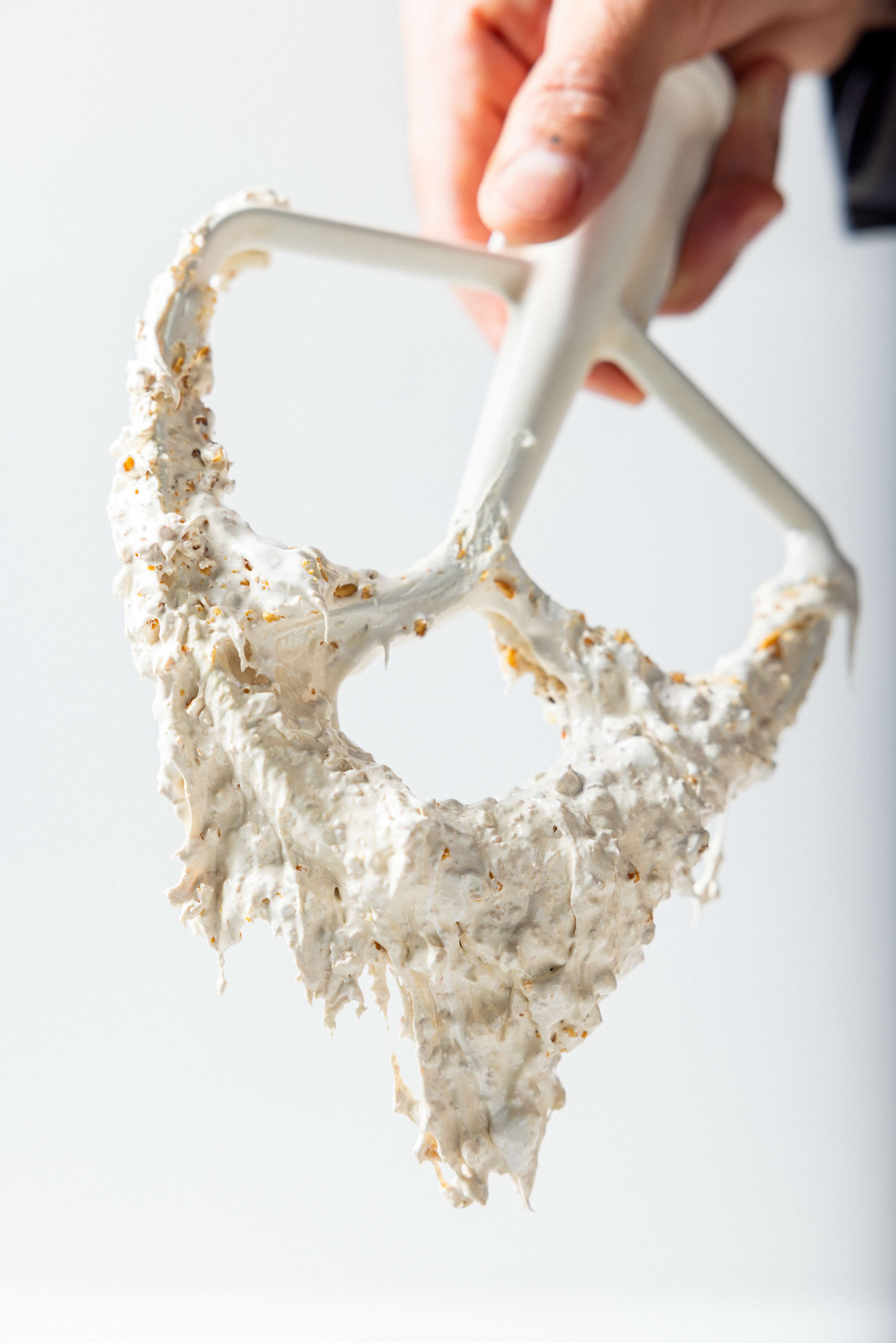 Switch the attachment from the whip to the paddle, add in the salt and the ground roasted peanuts.