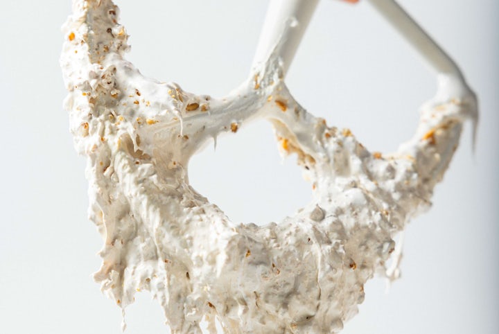 Pour over sugar and egg white mixture, and whip on high speed in a stand mixer.