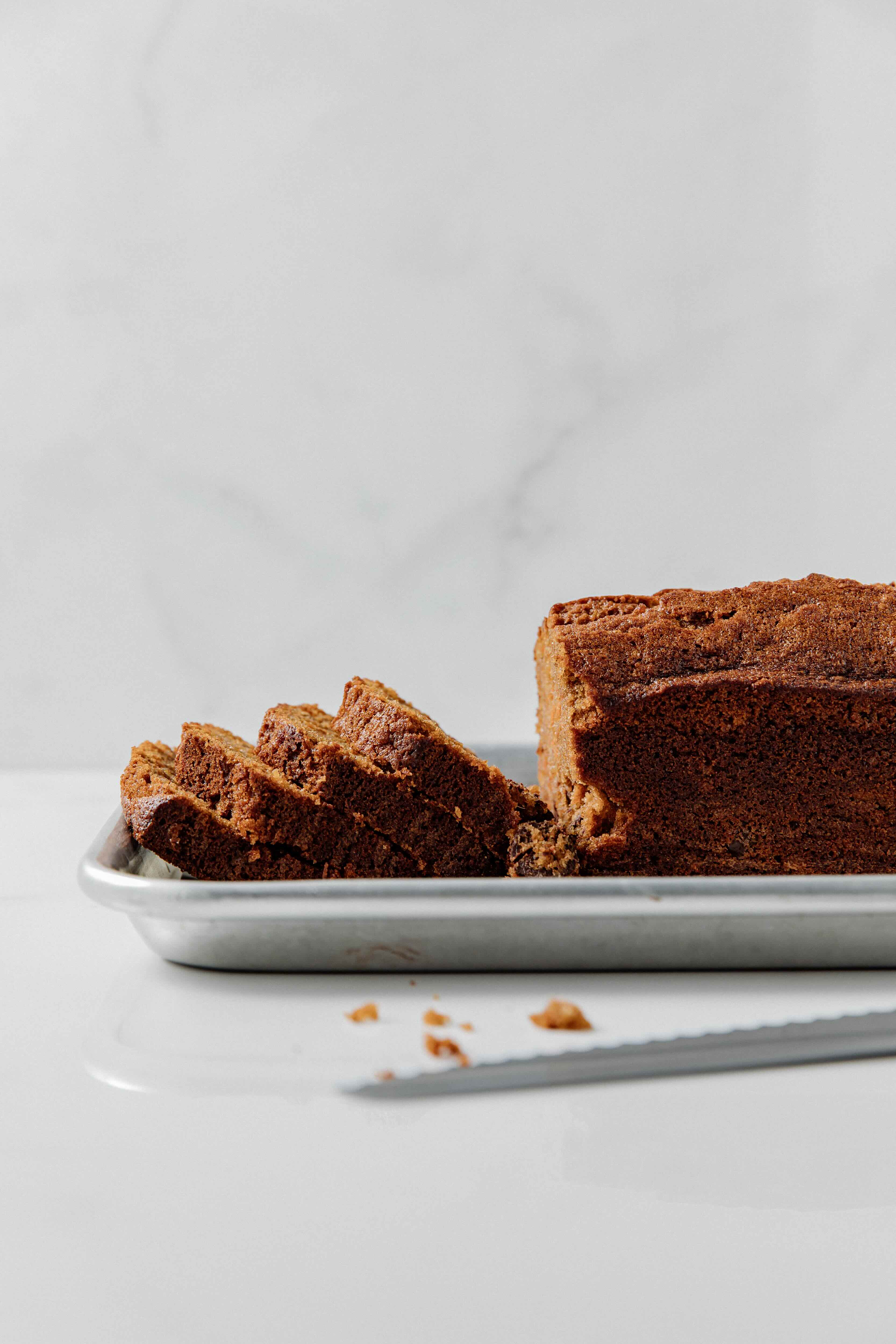 Black Emmer is an ancient grain that adds nutritional value as well as a natural sweetness to baked goods. In this quick bread, it complements the brightness of the carrots. Our Sante 72% bittersweet chocolate, made with coconut sugar, adds caramel notes that pair well with the flours and mild sweetness of this bread.