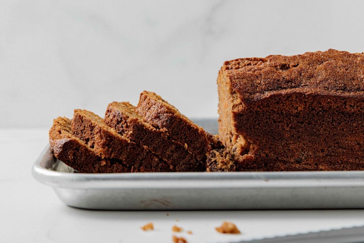Grease and line a 9.5"x 3"x 3" loaf pan with parchment paper. Fill pan and bake bread at 330°F (166°C) for approximately 45-50 minutes, or until center springs back when lightly pressed.