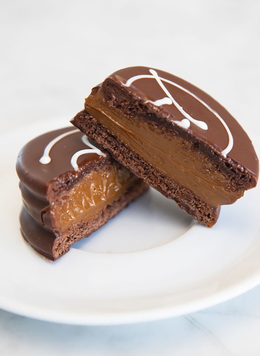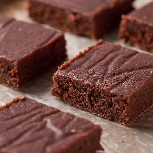 Melt butter and chocolate, mix together and reserve. Sift flour and salt and reserve. In a mixer bowl fitted with a whisk, combine the eggs and sugar at low speed, ensuring to not incorporate any air into the mix. Once homogeneous, add the chocolate and butter mixture. Once in blended, gradually add flour and salt insuring no lumps. When complete, pour batter into a half size sheet pan lined with parchment or a silpat. Bake in a 350 degree preheated oven for 25-30 minutes or until it had “puffed” slightly and appears “set”. Cool completely.