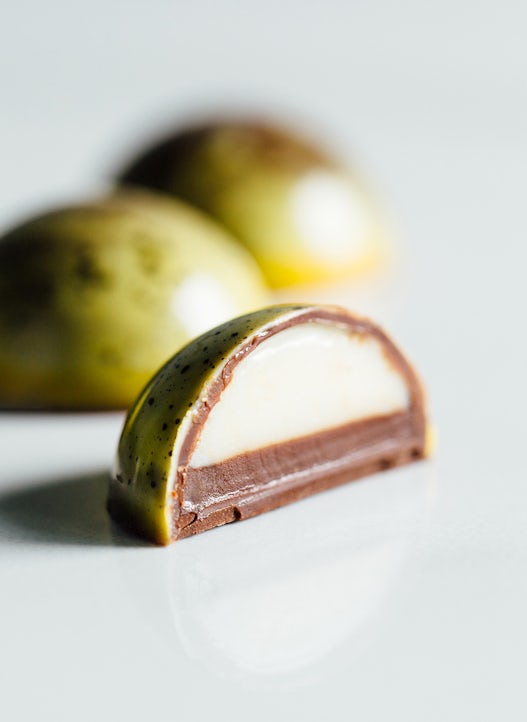 Place all except chocolate into a suitable pot. While whisking bring all to a boil. Cook 90 seconds. Whisk in chocolate. Chill until ready to use.