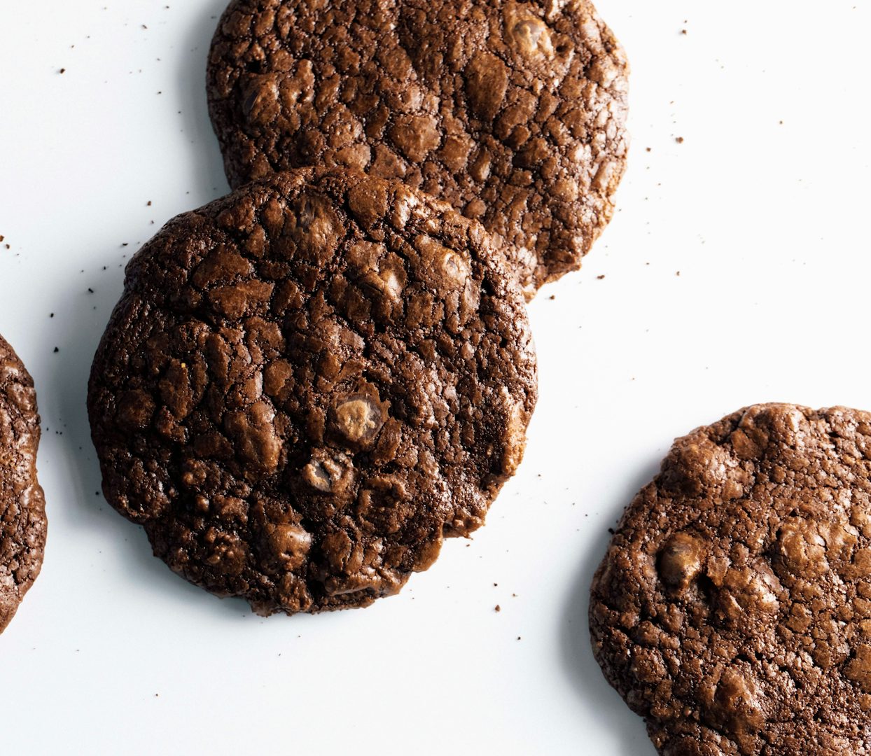 Fold in previously sifted dry ingredients, followed by roughly chopped Guittard 38% Soleil d'Or wafers. Pour batter onto a sheet pan lined with plastic. Cover with more plastic and chill.
