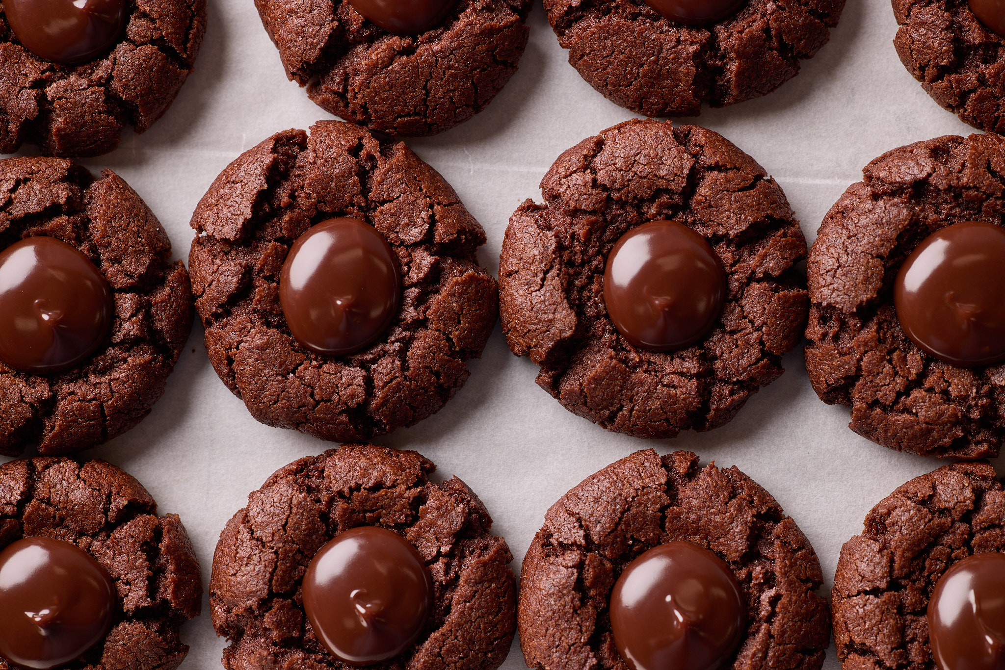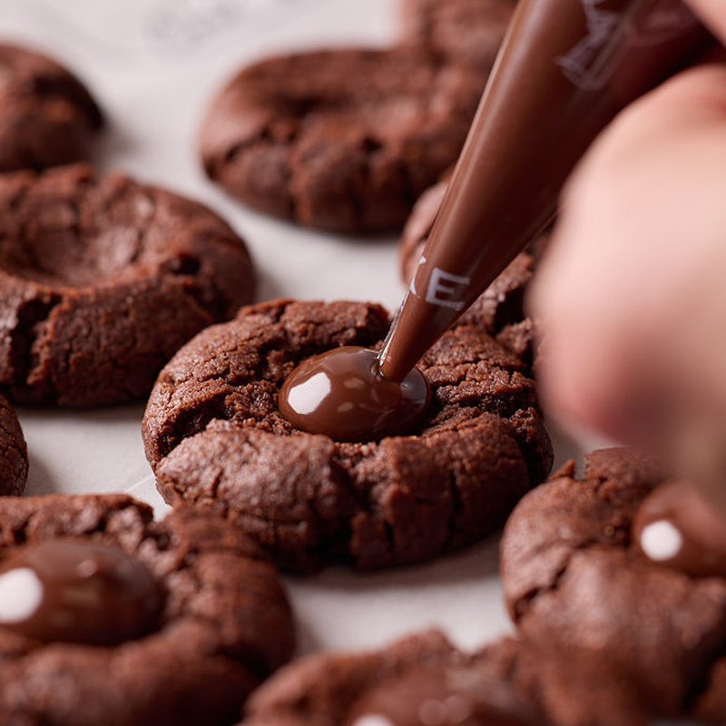 Decadent and rich chocolate thumbprint cookies by acclaimed pastry chef, Emily Luchetti.