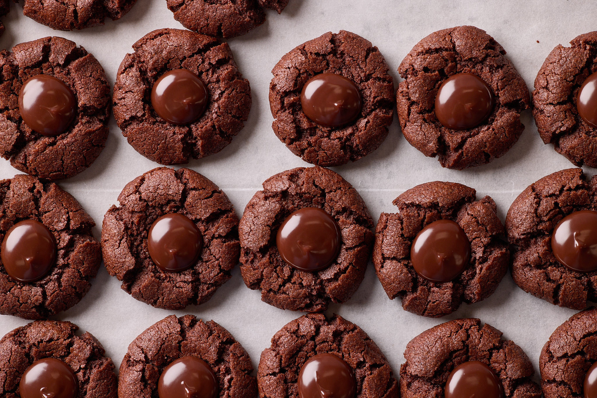 Decadent and rich chocolate thumbprint cookies by acclaimed pastry chef, Emily Luchetti.