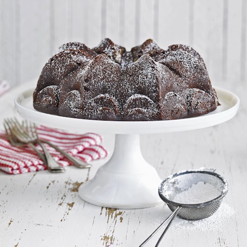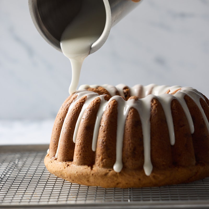 Bake for 1 hour, or until a toothpick inserted into the center comes out clean. Let the cake sit on a wire rack for 10 minutes to cool. Invert a second wire rack over the top of the cake. Using both hands, flip the cake and rack so the pan is upside down on the rack. Gently shake the pan to release the cake onto the rack. Flip the cake back over so it is right-side up. Allow to cool completely, 2 to 4 hours, then wrap tightly in plastic wrap. This is best served the morning after you make it. Store wrapped tightly in plastic wrap at room temperature for up to 5 days; or in the freezer for up to 2 months. To defrost, move the wrapped cake to the refrigerator overnight. Reheat in a 350°F [180°C] oven for 5 to 10 minutes or until heated through.