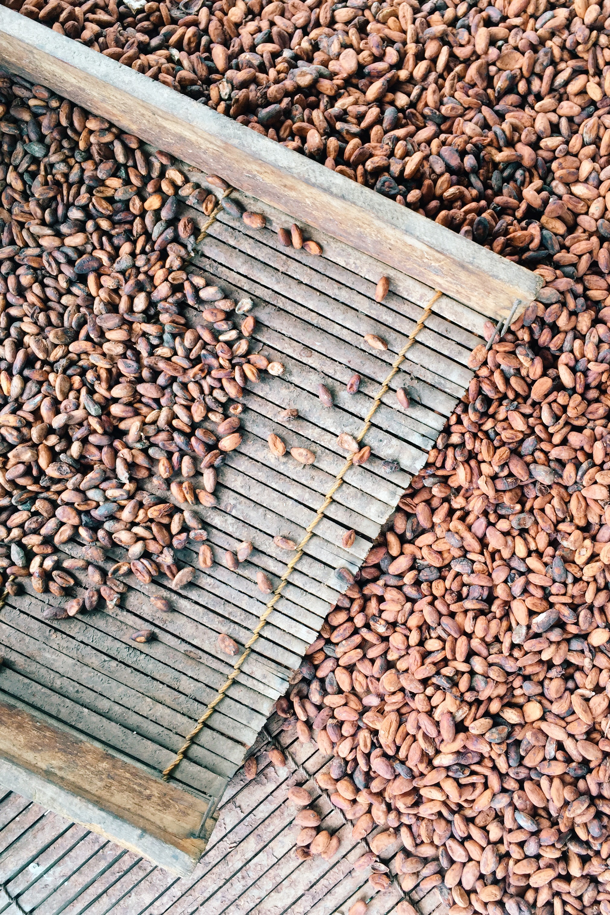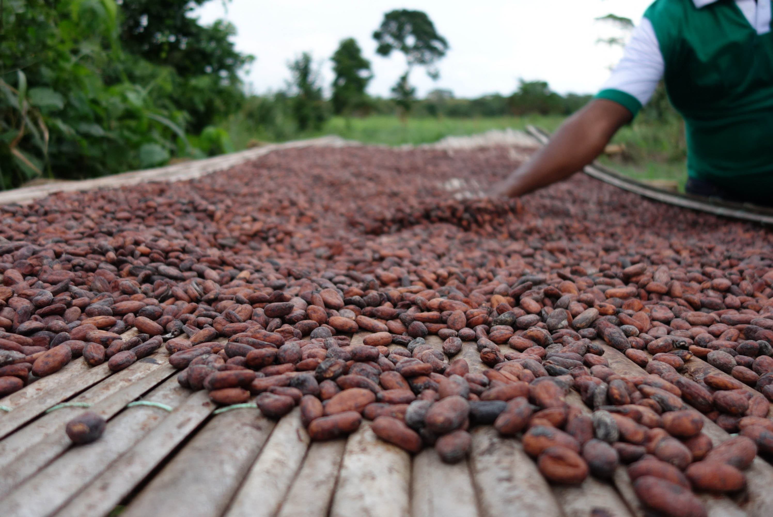 Our partnership with our supply chain partner, ofi, and Société Coopérative Solidarité Agricole de Côte d’Ivoire (SCOSA CI), our Fair Trade cooperative partner in Sassandra, Ivory Coast is a good example where Fair Trade premiums matched with farmer labor and investment are supporting the building of elevated drying mats, a necessary investment to assure cocoa quality and flavor.